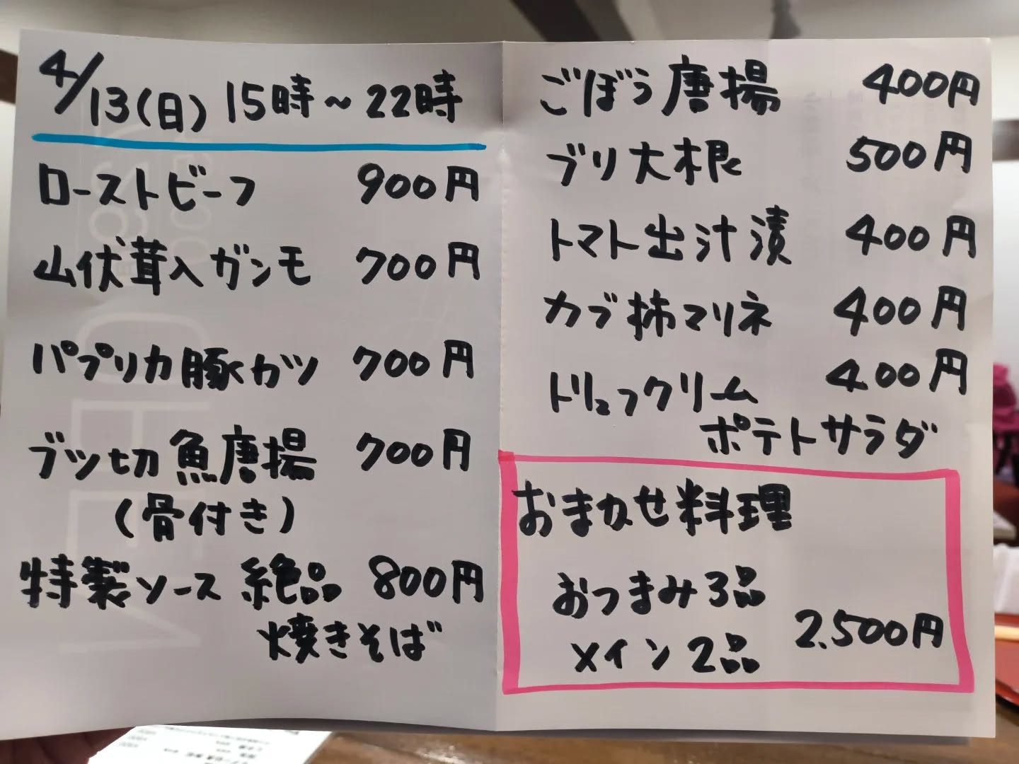 4月13日(日)15時〜22時