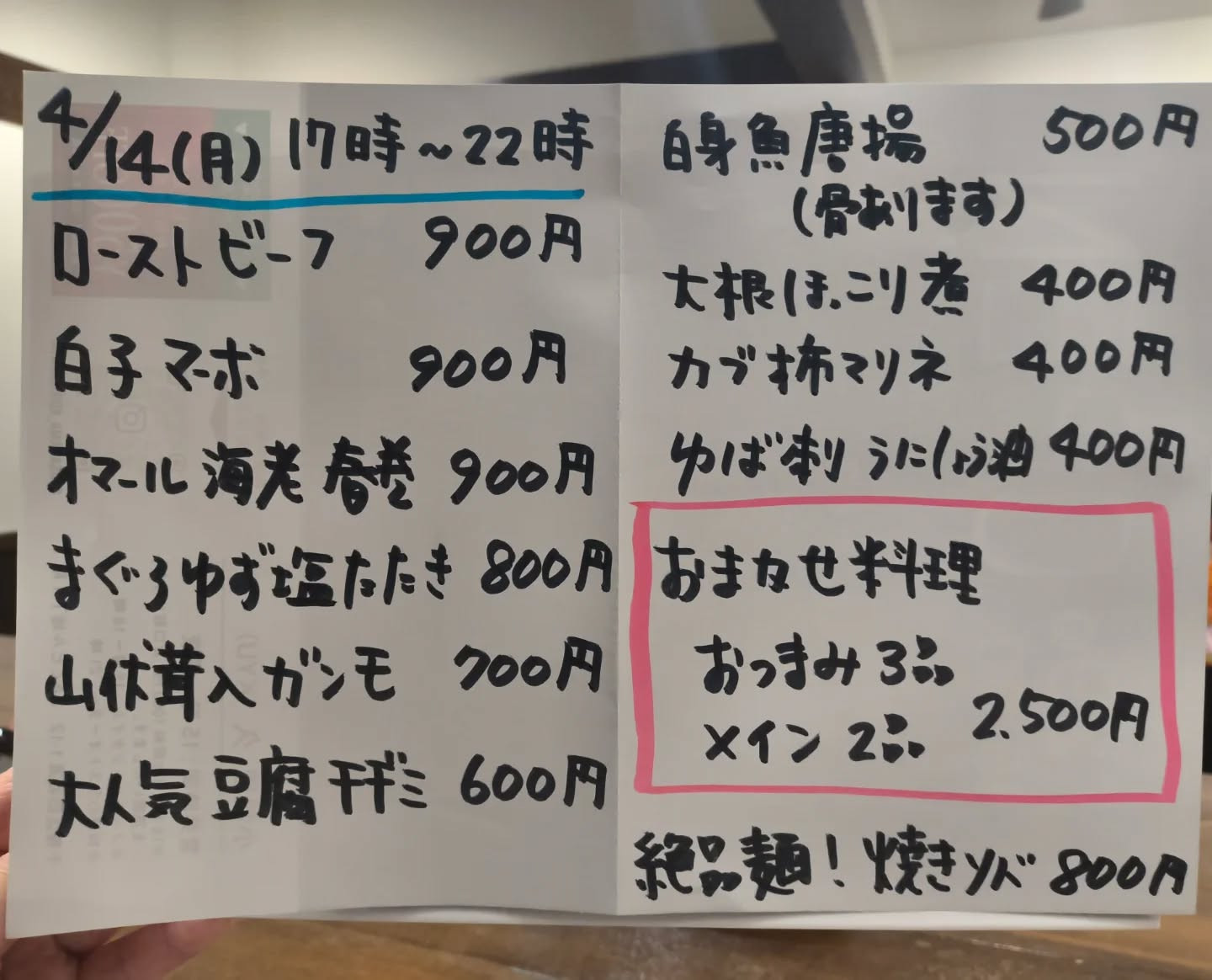 4月14日(月)17時〜22時
