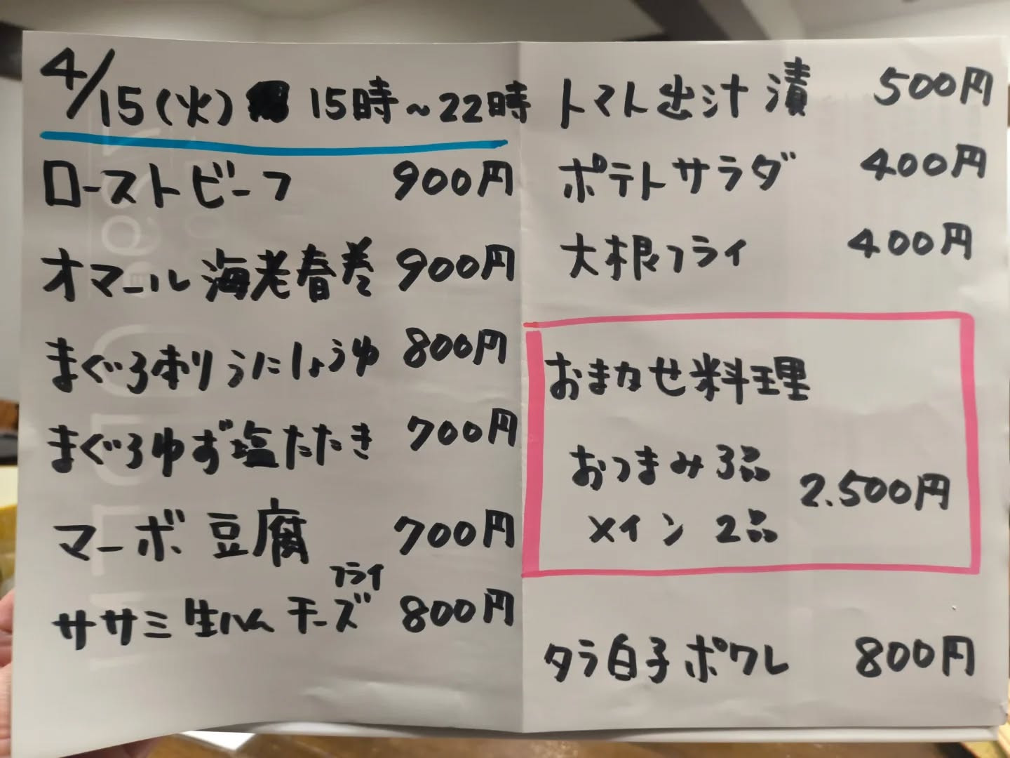 4月15日(火)15時〜22時