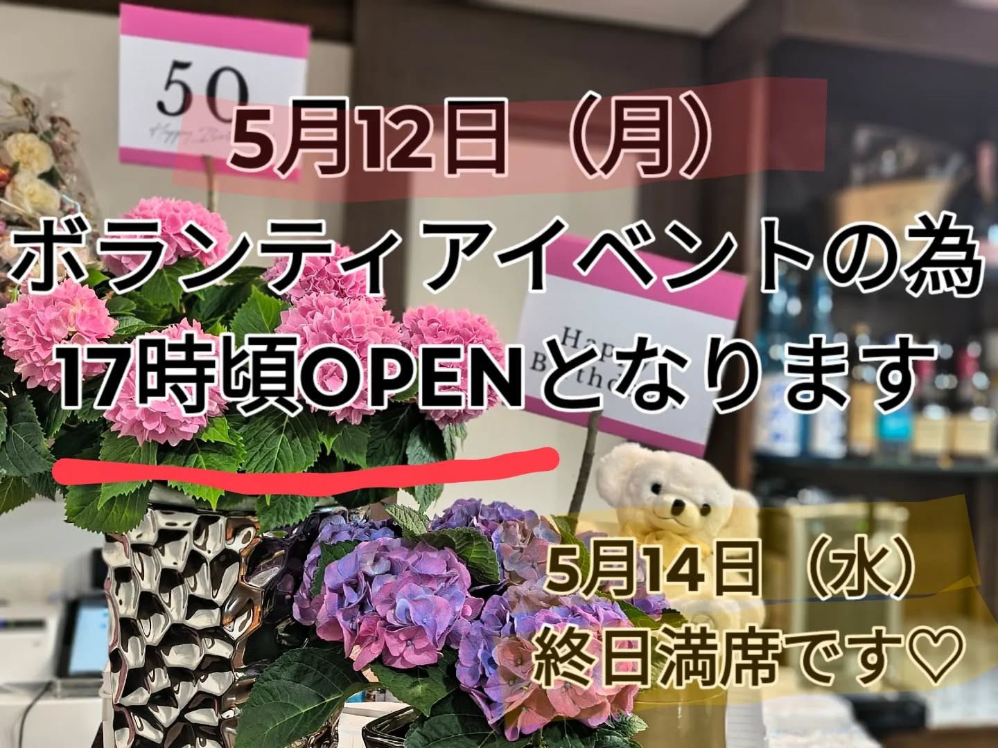 5月12日(月)17時頃OPEN