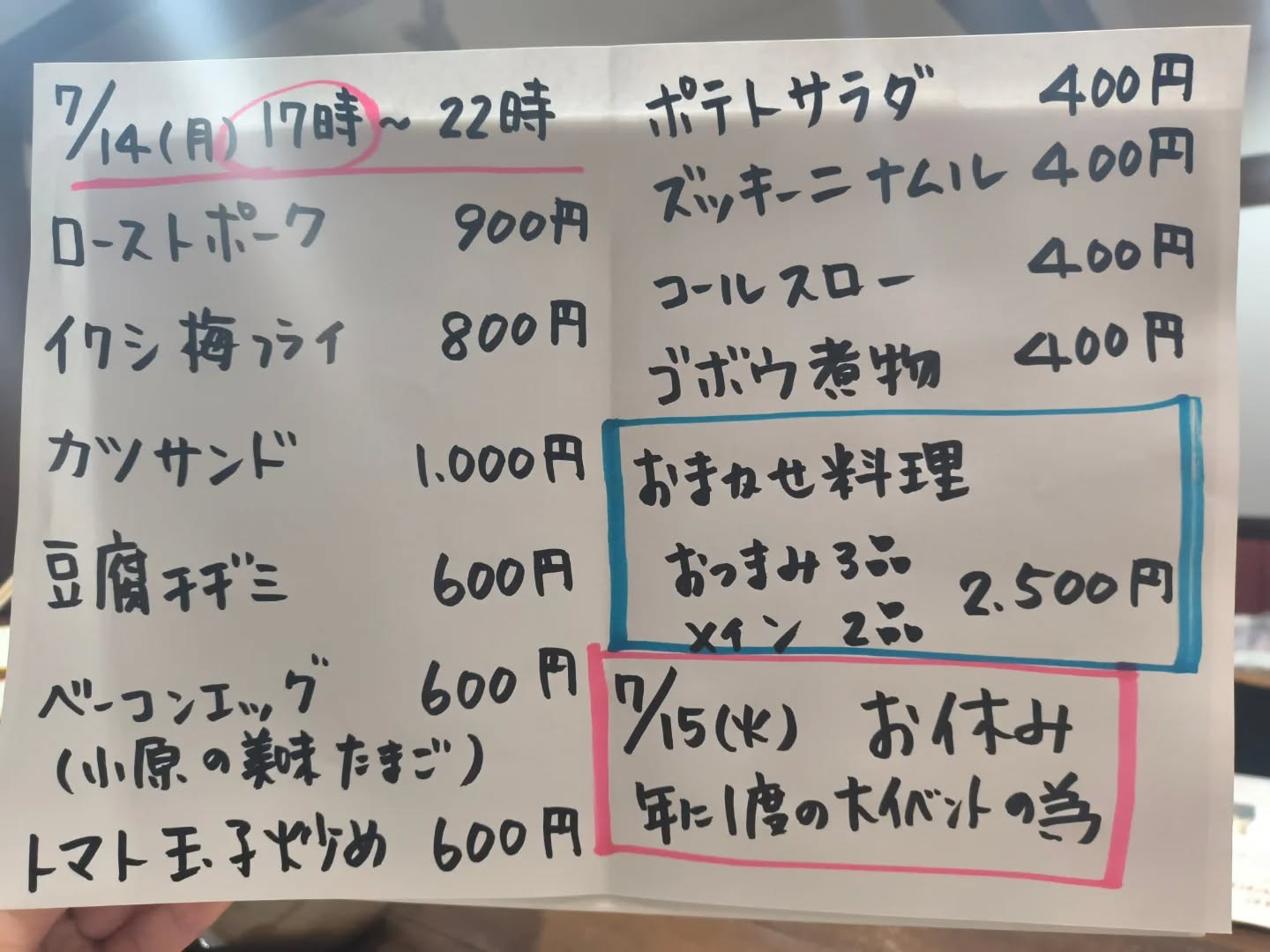 7月14日(月)17時〜22時
