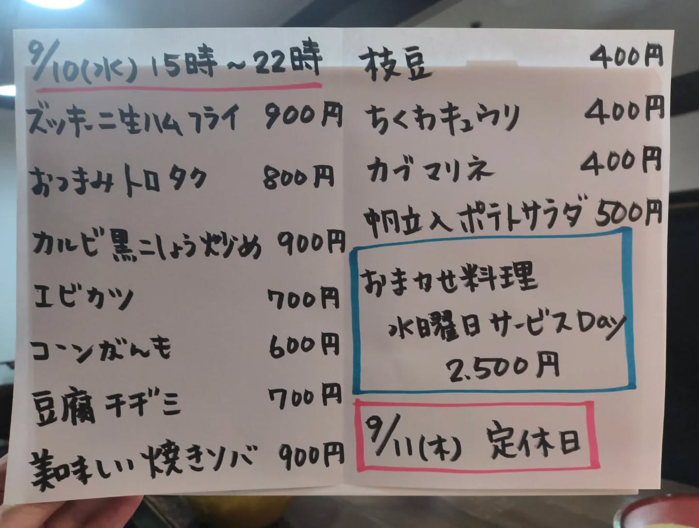 9月10日(水)15時〜22時