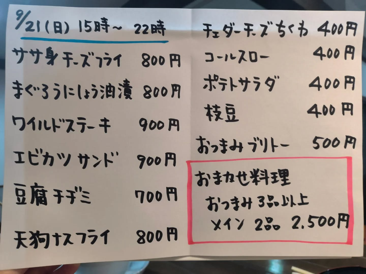 9月21日(日)15時〜22時