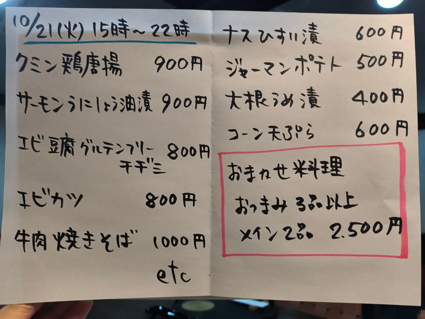 10月21日(火)15時〜22時