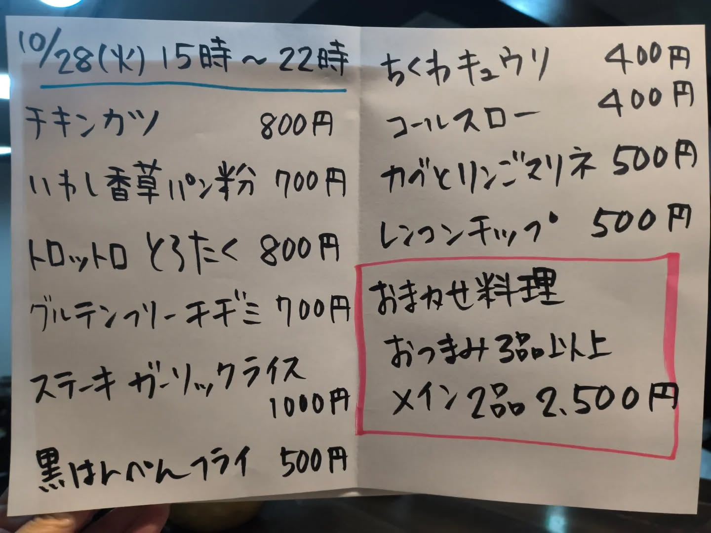 10月28日(火)15時〜22時