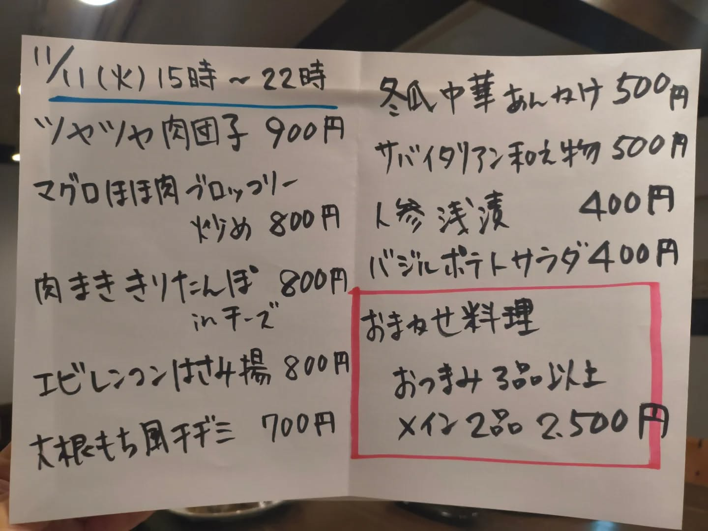 11月11日(火)15時〜22時