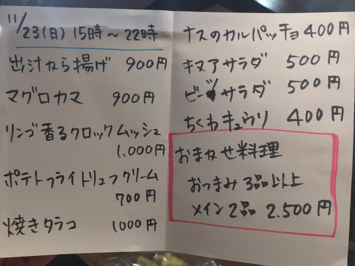 愛知県名古屋市千種区で居酒屋なら、地下鉄東山線 本山駅から徒歩30秒の小料理久 KYUへ。 長年お弁当屋さんで働いていた経験と、韓国やメキシコ、フランス、イタリアを巡る旅から得た知識を活かし、ここでしか味わえないおばんざいや創作料理と美味しいお酒を提供しております。おばんざいをはじめ、一品料理、鉄板料理、コース料理をご用意しており、日本酒やスパークリングワインとの相性も抜群です。