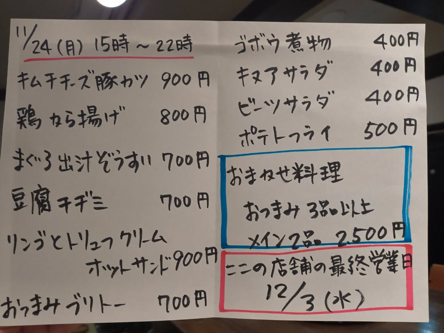 11月24日(月)15時〜22時