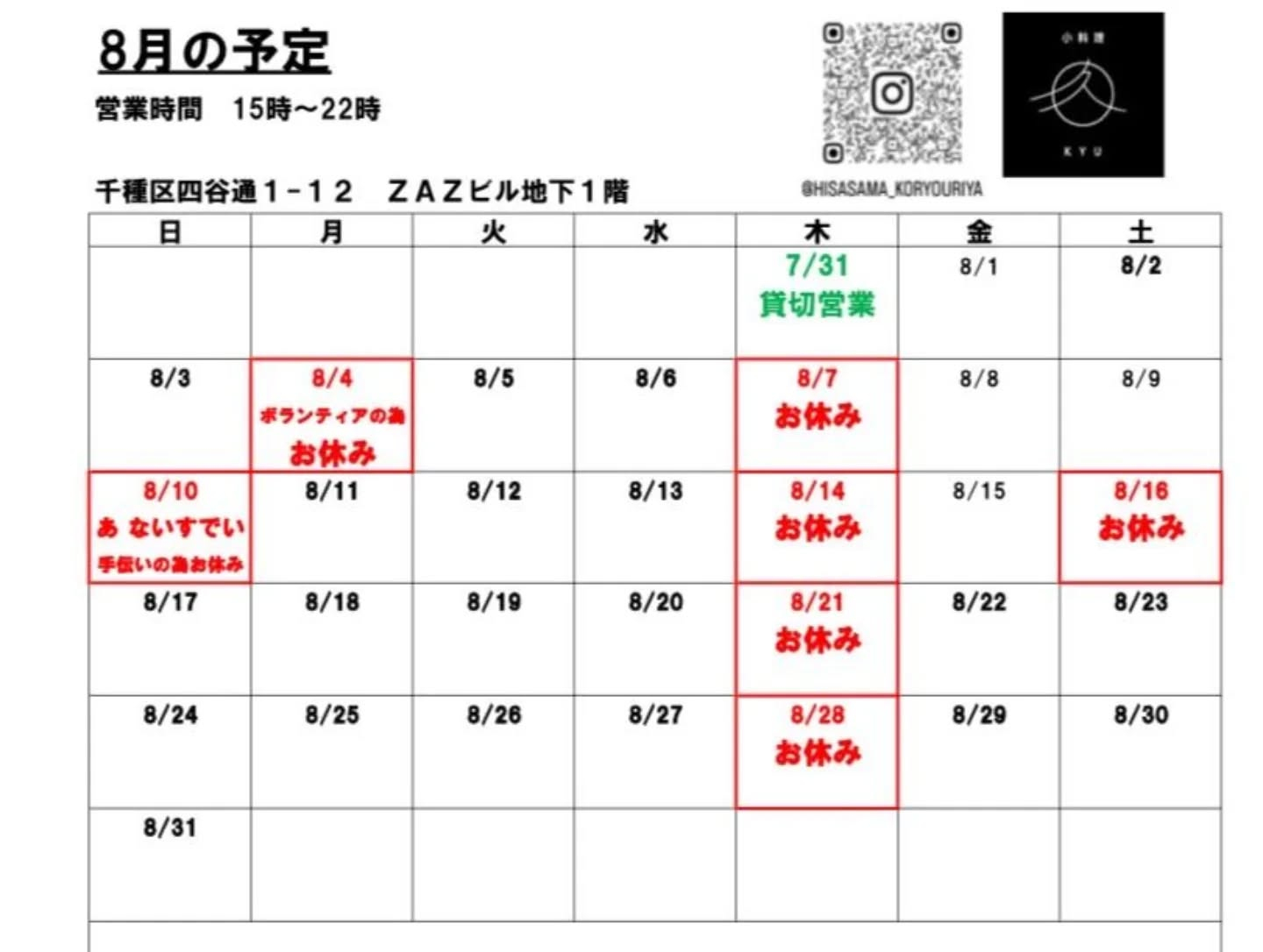 8月9日(土)15時〜22時 8月9日(土)15時〜22時8月10日(日)は移転先でのお手伝いの為、お店はお休みを頂きます♡今日も元気いっぱいお待ちしておりまーす♡#女将#隠れ家#千種区#居酒屋当店でご利用いただける電子決済のご案内下…